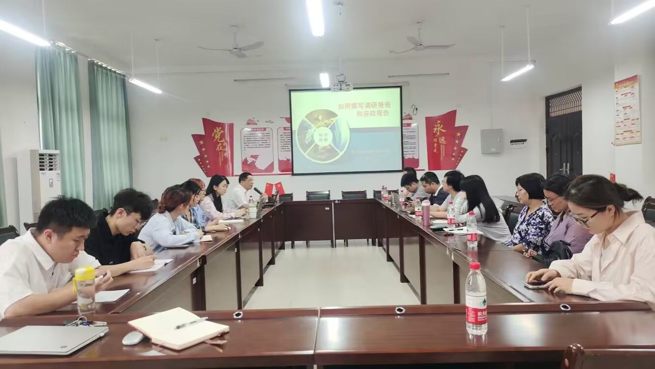 报告以“文旅咨政报告与调研报告的选题与撰写”为主题,对调研报告和咨政报告的选题、框架模式和写作技巧等进行了深入阐述。钟文干副主席针对文旅行业的发展实际与需求,紧密结合咨政报告与调研报告的写作要求,旁征博引,深入浅出。与会师生认真听取和学习,受益匪浅。会后钟文干副主席对社科研究选题问题与师生们进行广泛探讨。