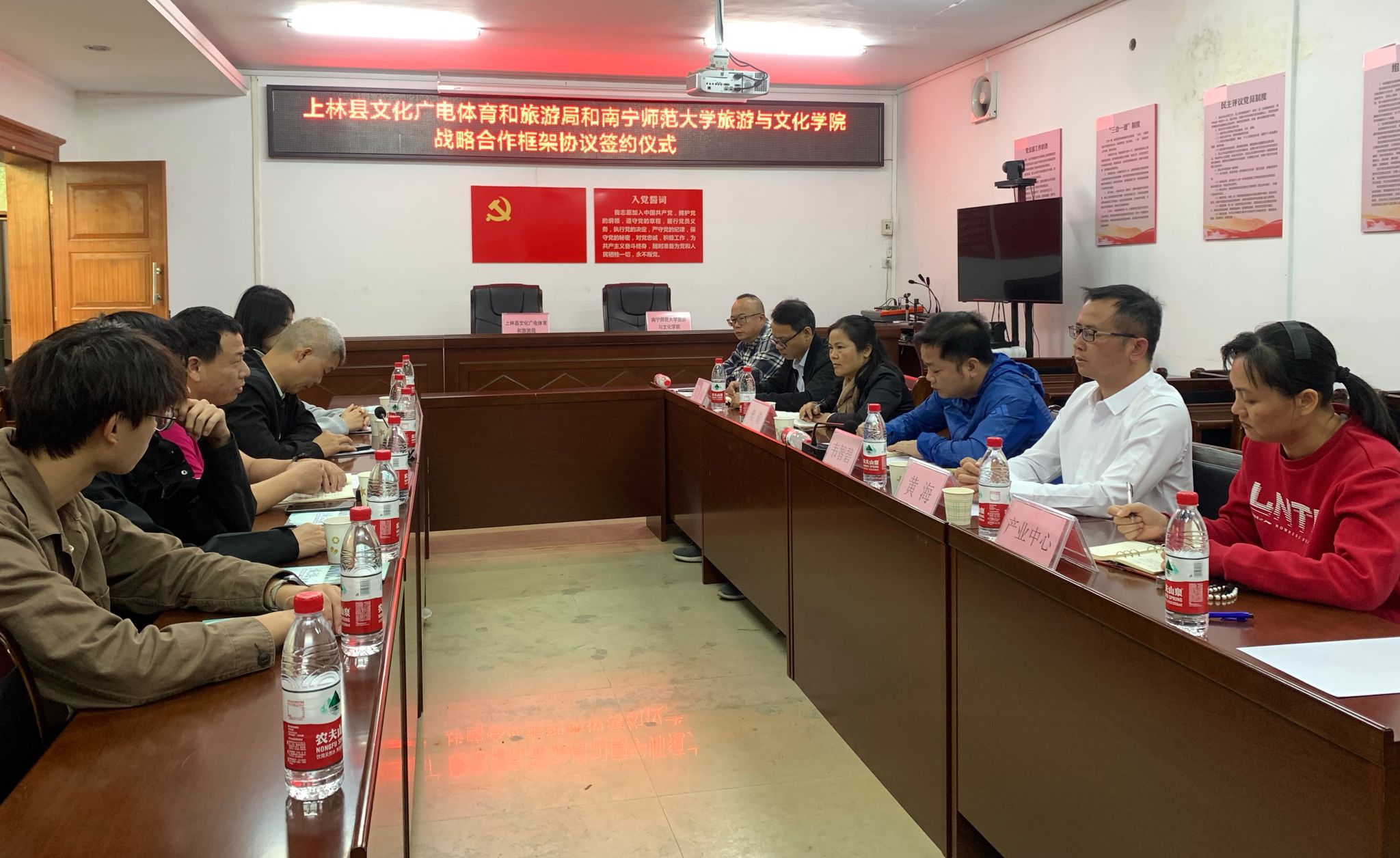 2024年11月20日,bevictor1946韦德官网师生代表在经理段文军带领下抵达上林县文化广电体育和旅游局二楼会议室,与上林县文广体旅局共同举行战略合作框架协议签约仪式。此次签约标志着bevictor1946韦德官网在文化、旅游等领域与地方合作开启深度合作新篇章,旨在整合双方资源优势,凭借高校的专业学术力量与人才储备,推动地方文旅产业升级,并促进公司在文旅产业相关的人才培养模式与实践的协同发展。