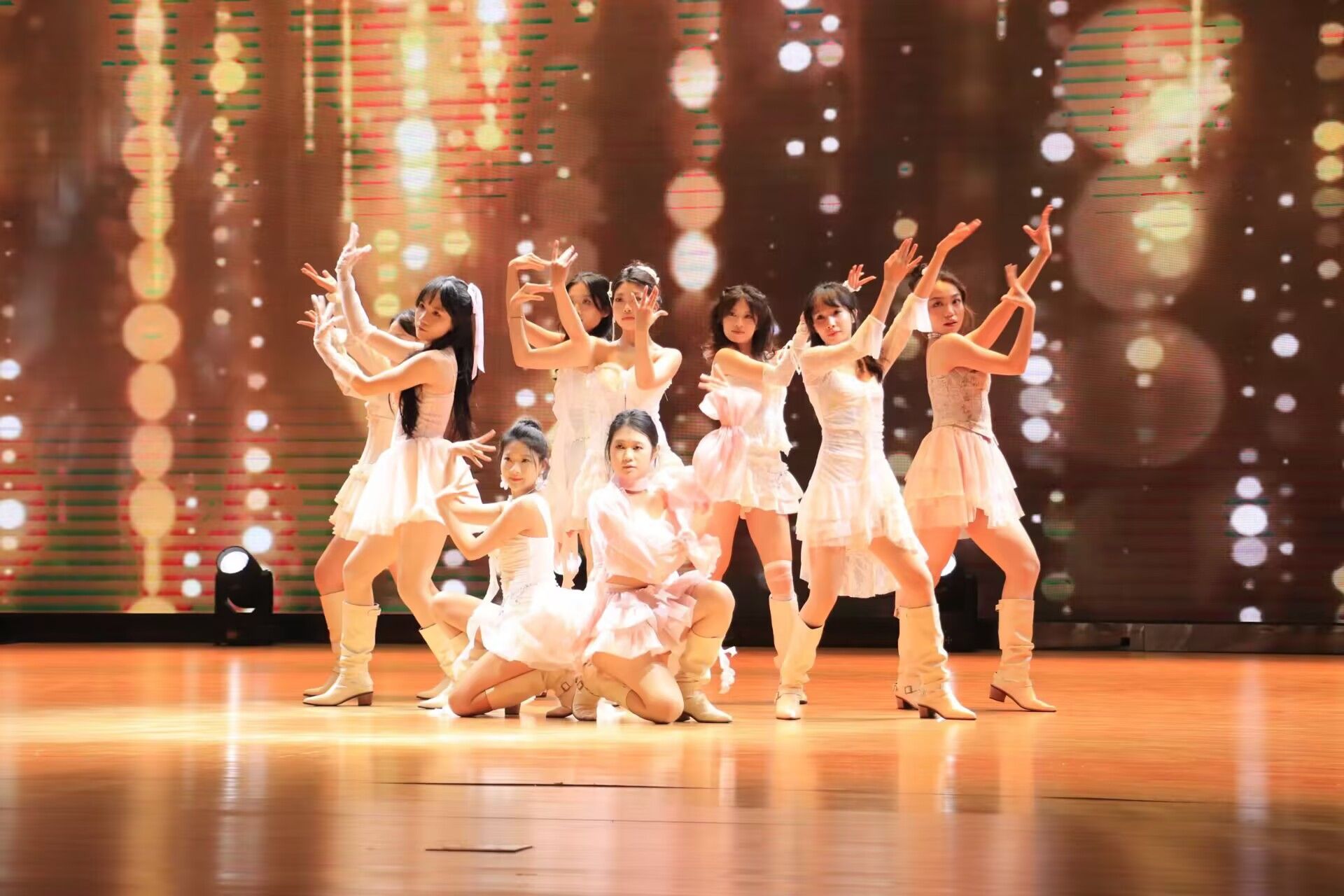 舞蹈类节目堪称视觉焦点,风格多元且极具感染力。《碇步桥》以轻盈舞姿勾勒江南水乡诗情画意;《希格希日》独具民族韵味,舞姿舒展大气;《国际标准舞串烧》节奏明快,专业范儿十足;《水之灵》以灵动肢体诠释“上善若水”的哲学意境,古典与现代交融;《舞蹈串烧》《舞动民族》各具特色,《起舞盛世》以昂扬舞姿诠释“青春向党,强国有我”的信念,气势恢宏。