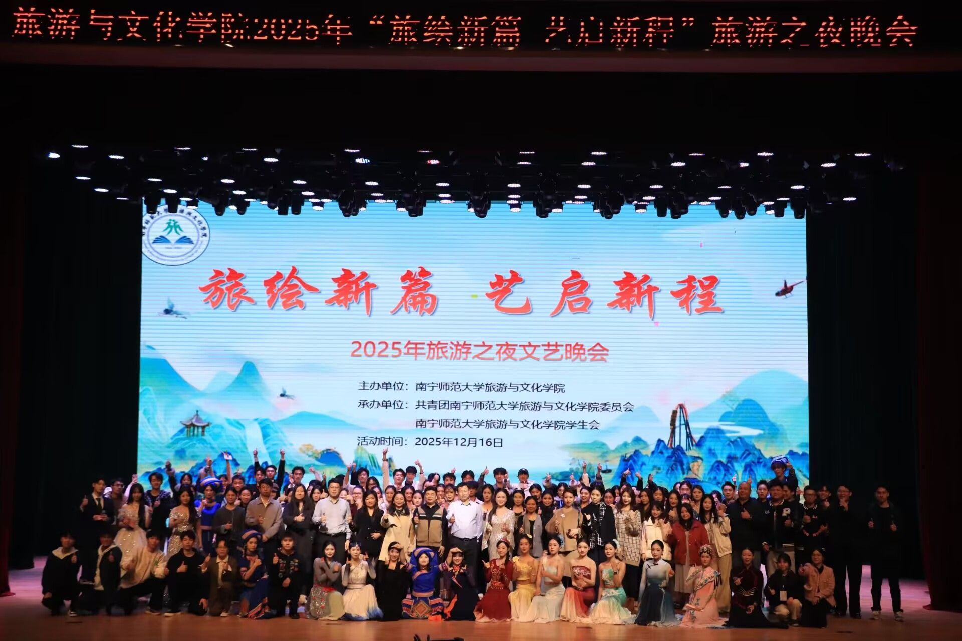 整场晚会在欢声笑语中圆满落幕,不仅为师生们留下了珍贵的青春记忆,更以艺术为媒彰显了新时代青年的文化自信与责任担当,激励着全体旅文人砥砺前行,续写更加绚丽的篇章。