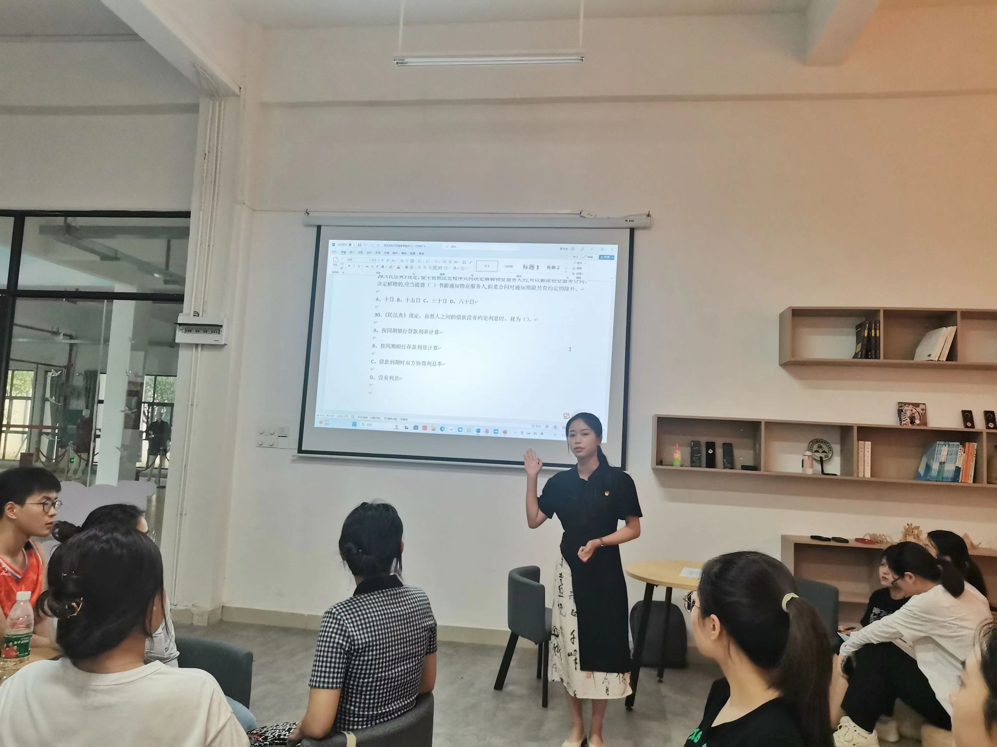 本次活动结合全党正在开展的主题教育,深入学习宣传习近平新时代中国特色社会主义思想,突出学习宣传习近平法治思想;深入学习宣传党的二十大精神,推动学习宣传往深里走、往实里走、往心里走。活动以分组的形式进行民法典知识答题,将支部党员分为3组进行答题,答题结束后小组讨论日常生活中有关民法典的知识,并选出一名代表进行案例分享。各个小组的代表都积极踊跃上台,分享自己身边的民法典知识。