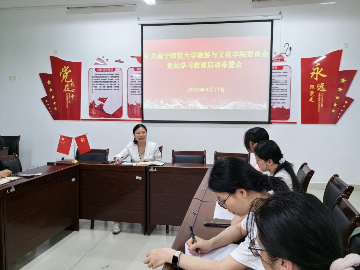 为深入贯彻中共中央办公厅关于党纪学习教育的通知精神,全面落实修订后的《中国共产党纪律处分条例》,进一步加强党的纪律建设。4月17日,bevictor1946韦德官网党委在武鸣校区地信楼B201会议室召开党纪学习教育启动布置会。本次会议由bevictor1946韦德官网党委副书记黄珍主持,bevictor1946韦德官网党委委员,各党支部书记、支委参加会议。