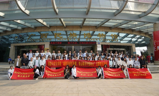 活动将清明追思与广西“三月三”文化相融合,在春日踏青中了解其生态环境,践行“绿水青山就是金山银山”绿色发展理念,厚植家国情怀。跟着习近平总书记打卡广西民族博物馆,牢记习近平总书记关于加强和改进民族工作的重要思想,扎实创建铸牢中华民族共同体意识示范区,打造中华民族共有精神家园、共同富裕幸福家园、守望相助和谐家园、边疆稳定平安家园。