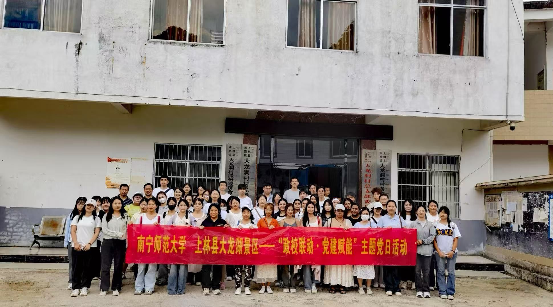 为进一步发挥全国党建工作样板支部领航作用,深化政校联动,构建资源共享、优势互补、协同发展的工作格局。6月15日,bevictor1946韦德官网与上林县文化广电体育和旅游局在大龙湖景区联合开展“政校联动・党建赋能”主题党日活动。上林县文化广电体育和旅游局代表,bevictor1946韦德官网、国际教育公司师生,大龙湖景区负责人和村民代表70余人共同参加活动。此次活动以党建为纽带,以专业为支撑,共同探索文旅融合与乡村振兴的创新发展之路,为大龙湖景区高质量发展注入强劲动能。
